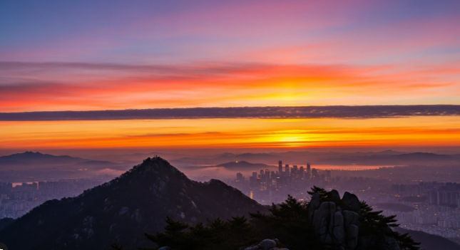인왕산은 종로구와 서대문구에 걸쳐 있는 산으로, 서울 도심에서 가까운 해맞이 명소입니다. 정상에서 서울 시내 전경을 한눈에 볼 수 있습니다.